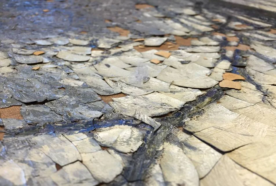 Detail of piece exhibiting acid burn.