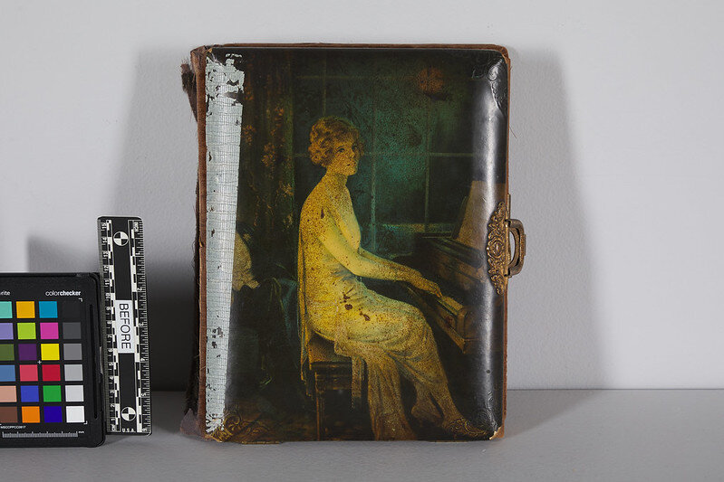 Every so often, we’re given the pleasure of treating a true family heirloom – a recipe book, a treasured violin, or scrapbook of memories. When this personal photo album came to The Center in need of care, we were excited to work with our client to learn more about their family as the treatment progressed.