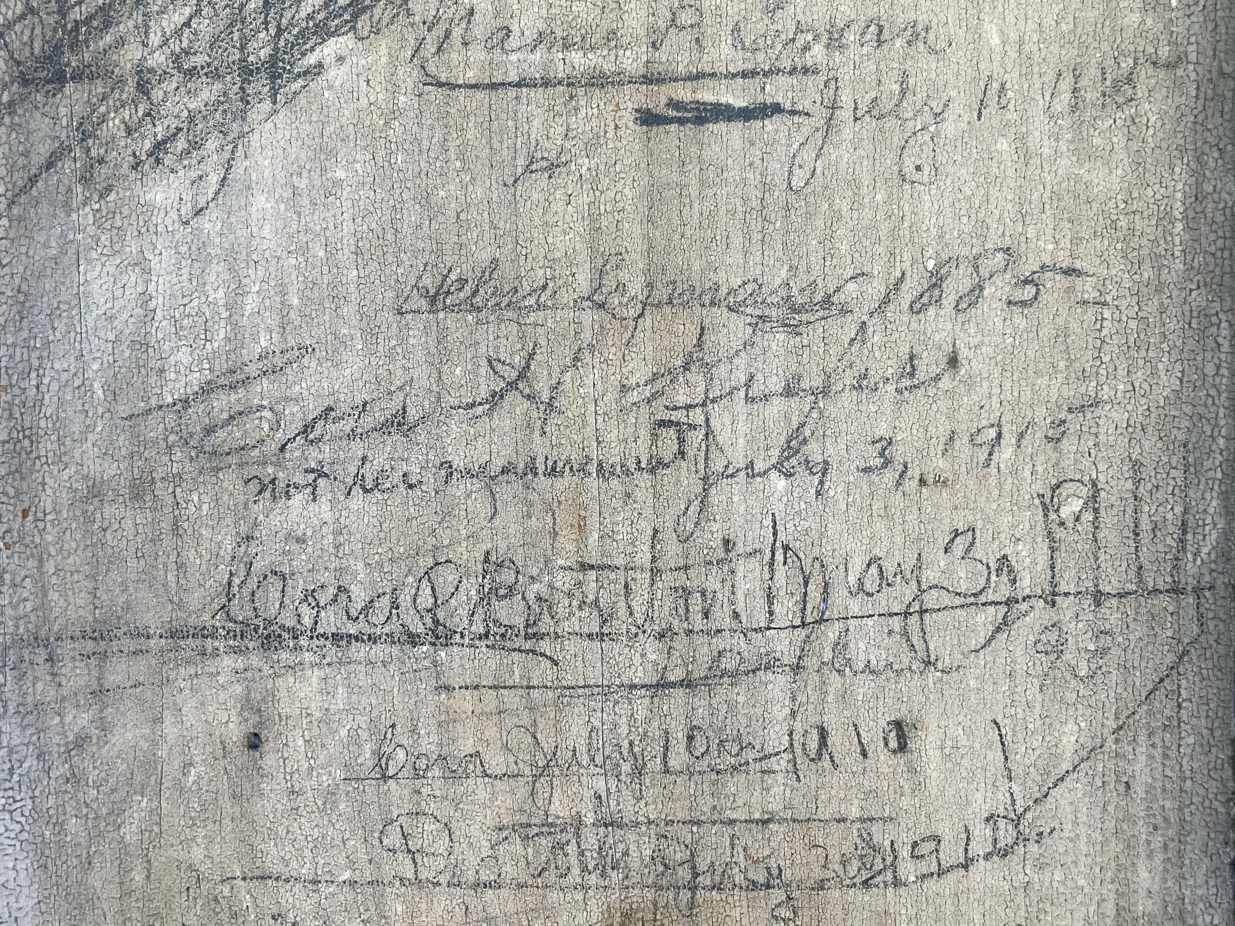 Kennicott House Signature Wall, detail with an interesting note: Cora H Kiefer, not her engagement, July, 3 1915