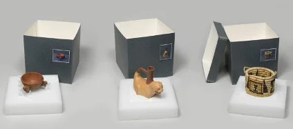After conservation treatment was complete, each of these items was individually housed in order for the client to safely store and handle the collection once returned. A custom archival blue board box was constructed for each artifact. These boxes were then lined with inert museum grade foam suitable for long term storage. A form fitting silhouette of each object was then cut into the foam with a cotton barrier placed into the cavity to prevent the artifacts from being abraded. For long trips , works should be further packed in a cardboard box or, preferably, a custom-designed crate built by a company specializing in this field.